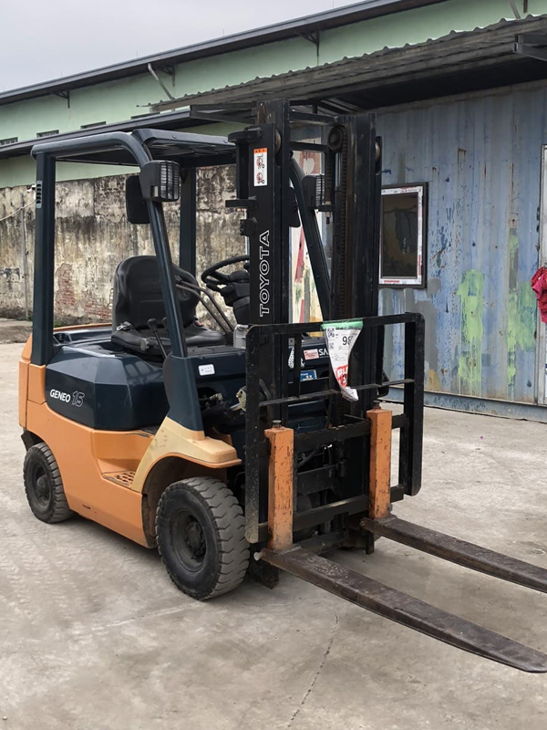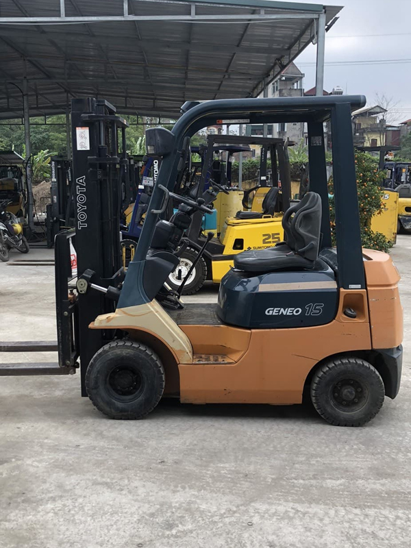 Xe nâng dầu 1.5 tấn Toyota 7FD15, lốp hơi, tháp cao 3m. Với bộ máy khoẻ và bền bỉ phù hợp với các công ty, cửa hàng sản xuất và buôn bán vật liệu xây dựng, sắt thép, những môi trường làm việc đòi hỏi những máy công nghiệp lớn.