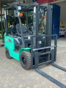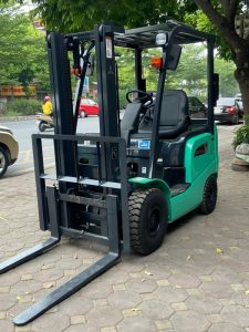 Xe nâng dầu Mitsubhishi 1.8 tấn số tự động được trang bị lốp hơi, phù hợp cho công việc nâng hạ liên tục nhiều giờ.