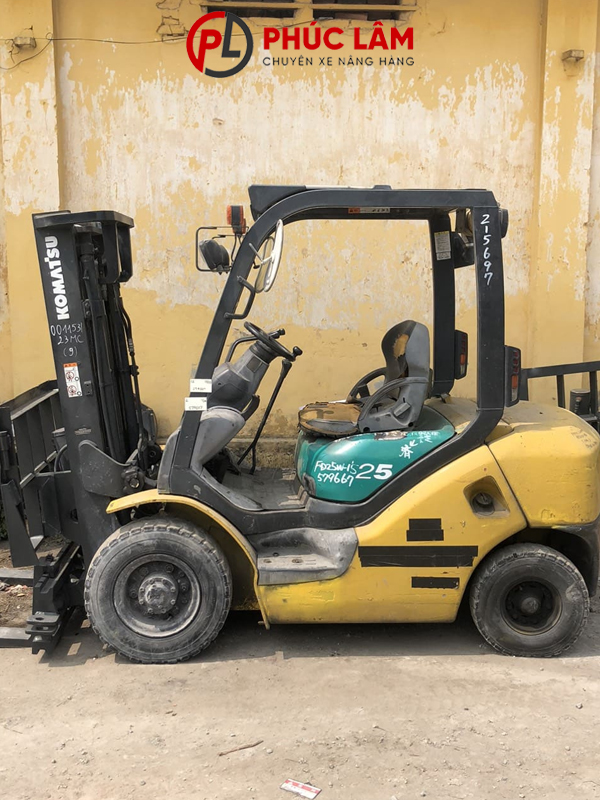 Xe nâng dầu 2.5 tấn Komatsu FD25W-15, gật gù, lốp hơi, nâng 3m, càng 920, số sàn, chạy 9575 giờ. Với bộ máy khoẻ và bền bỉ phù hợp với các công ty, cửa hàng sản xuất và buôn bán vật liệu xây dựng
