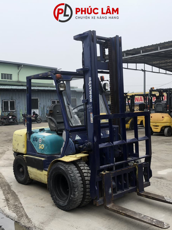 Xe nâng dầu ngồi lái 3 tấn Komatsu FD30T-12, lốp đôi hơi, số tự động, có gật gù. Với bộ máy khoẻ và bền bỉ phù hợp với các công ty, cửa hàng sản xuất và buôn bán vật liệu xây dựng, sắt thép,……