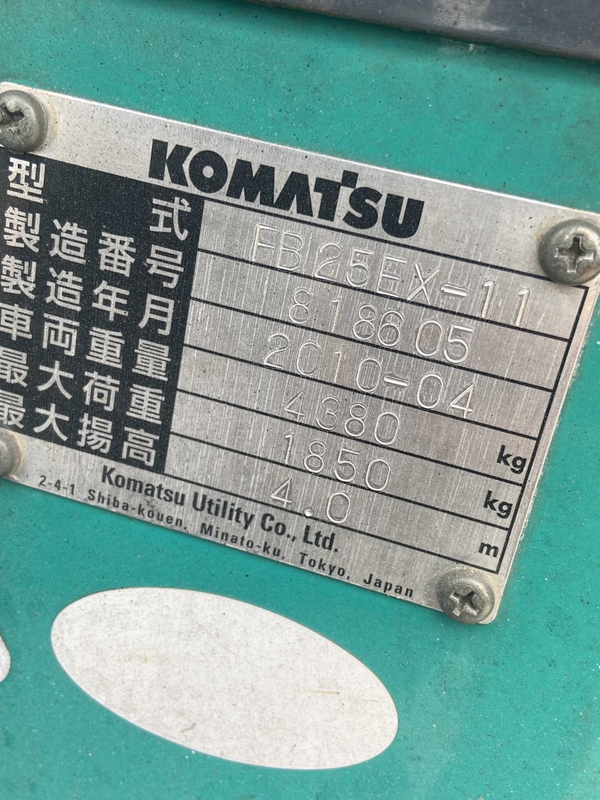 Xe nâng điện 2.5 tấn Komatsu FB25EX-11 là dòng xe nâng điện đời mới mới chạy 6080 giờ, không gây ô nhiễm không khí, tiếng ồn. Tại Phúc Lâm cam kết nhập khẩu xe chính hãng Komatsu đầy đủ giấy tờ hải quan kiểm đỏ.