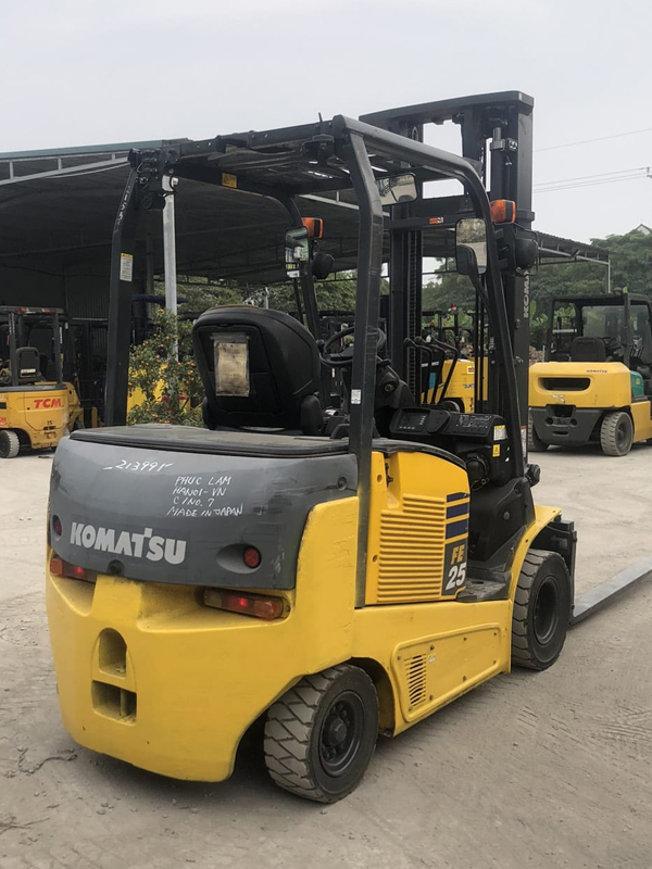 Xe nâng điện Komatsu 2,5 tấn bình khô sạc nhanh FE25-1 lốp đặc, chức năng gật gù, sản xuất 2019. Là dòng xe nâng điện pin khô đời mới