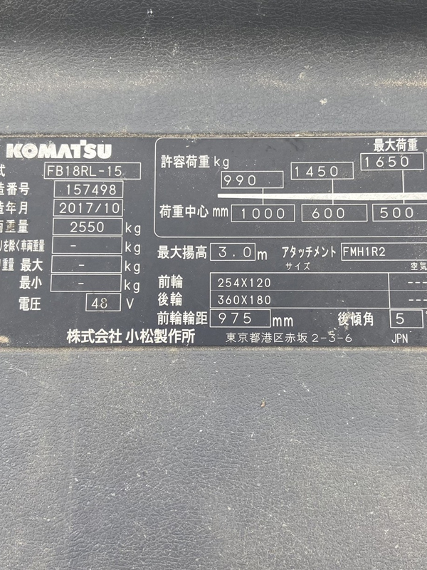 Xe nâng điện Komatsu đứng lái 1.8 tấn FB18RL-15 được Xe Nâng Phúc Lâm nhập khẩu nguyên chiếc chính hãng Komatsu Nhật Bản nổi tiếng trên thế giới về chất lượng và giá thành.