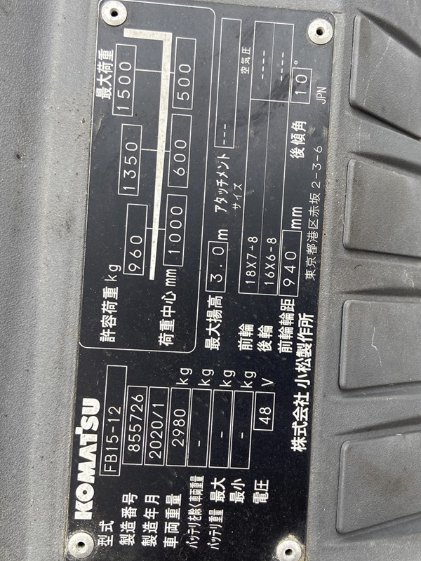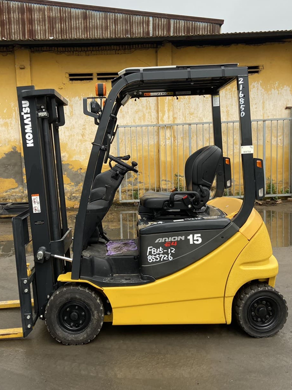 Xe nâng điện Komatsu ngồi lái 1,5 tấn FB15-12 lốp đặc, sản xuất 2020, lốp đặc, nâng cao 3m, được sản xuất để sử dụng nguồn nhiên liệu sạch