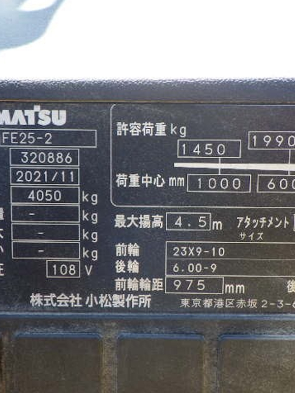 Xe nâng điện 2.5 tấn bình khô sạc nhanh Komatsu Komatsu FE25-2, lốp đặc, sản xuất 2021. Là dòng xe nâng điện pin khô đời mới, được sản xuất để thay thế cho dòng xe dầu của hãng Komatsu